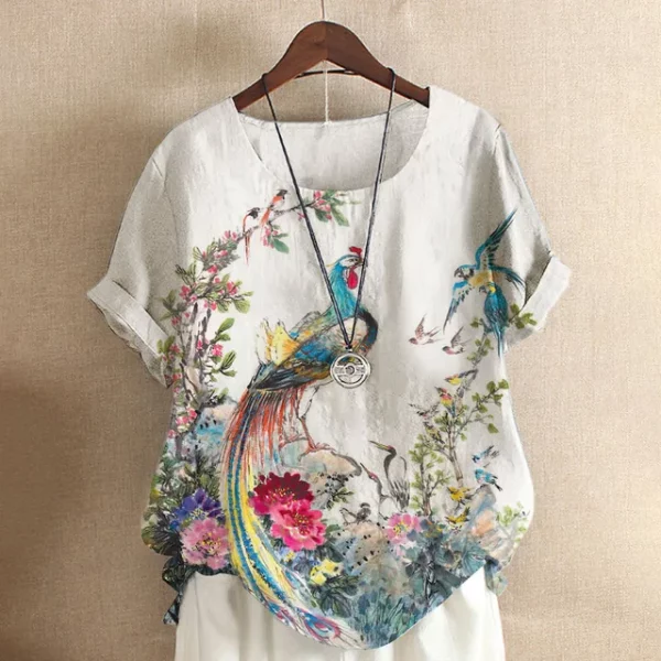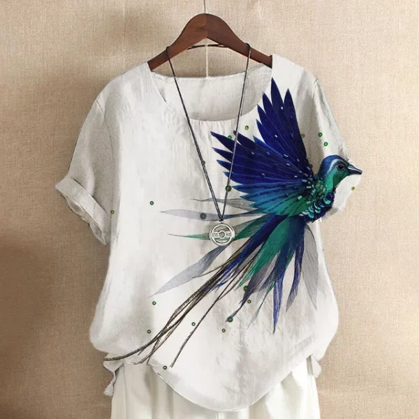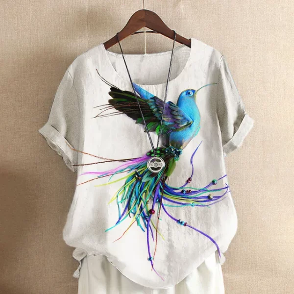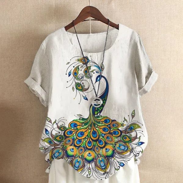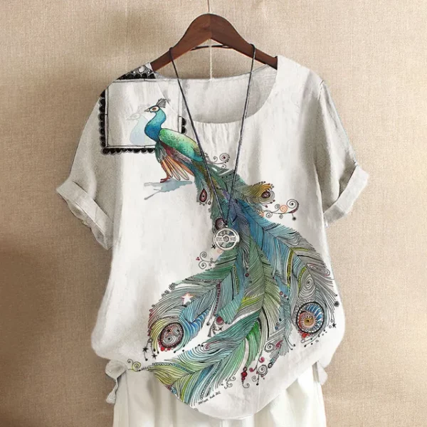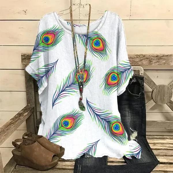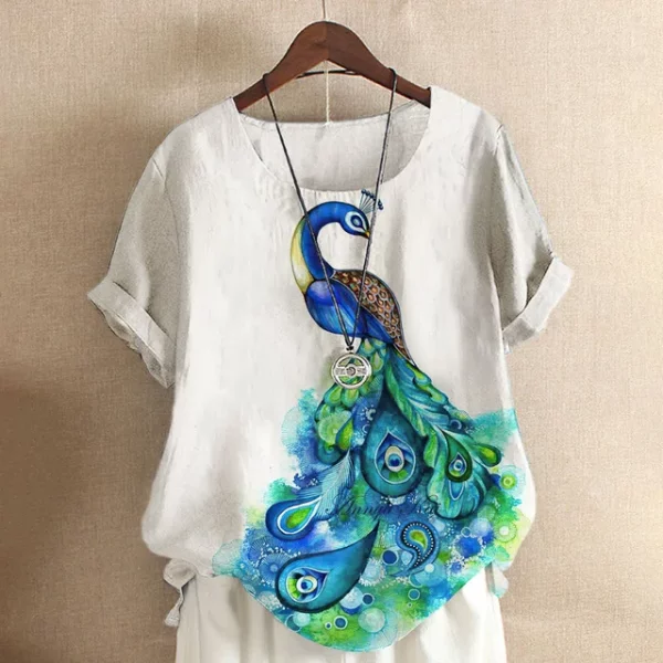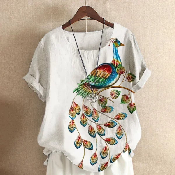 Women’s T-shirt New Fashion Summer Peacock 3DPrint Round Neck Short Sleeve T-Shirt Casual Loose White Color Blouse Top Plus Size