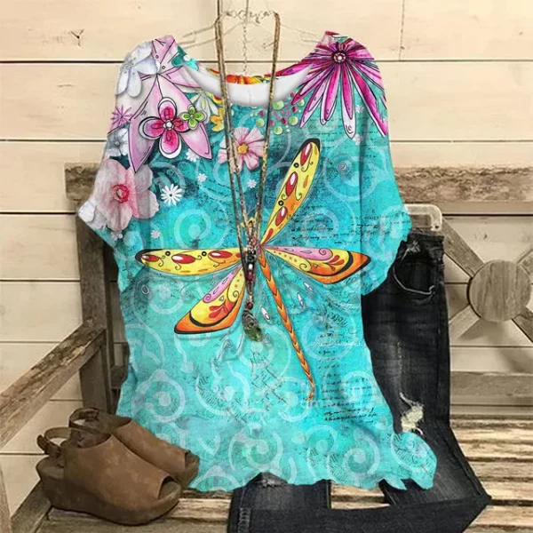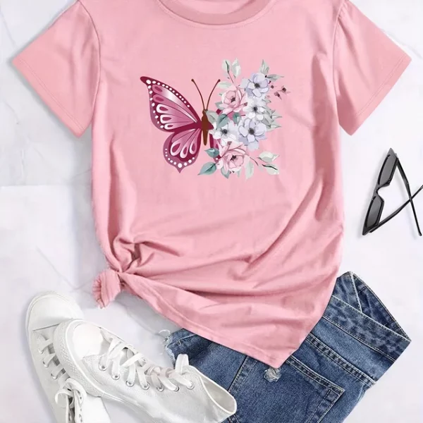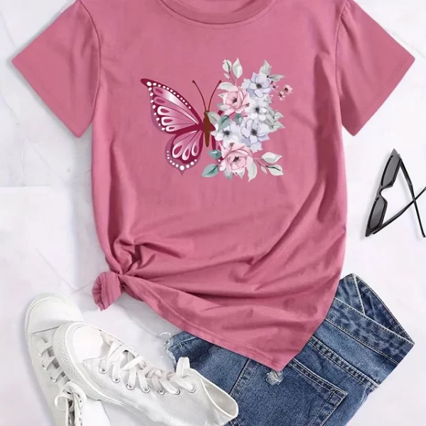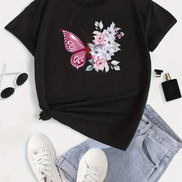 Women’s T-shirt Loose Round Neck Top Party Clothing Trend Print Pattern Comfortable Short Sleeved Women’s Fashion T-shirt Top