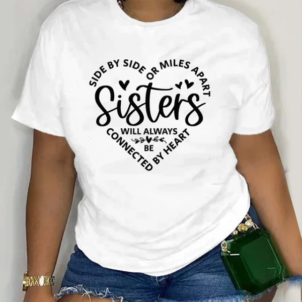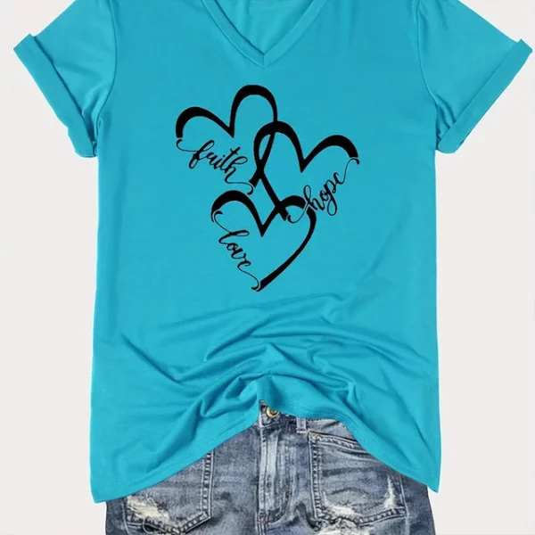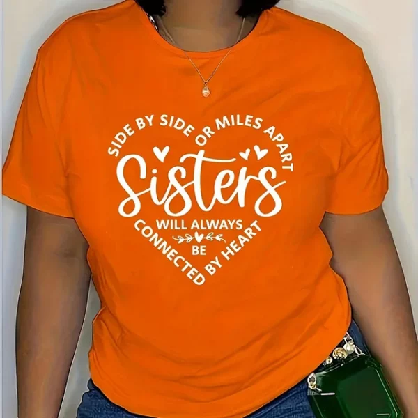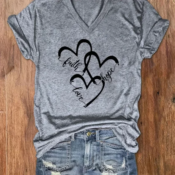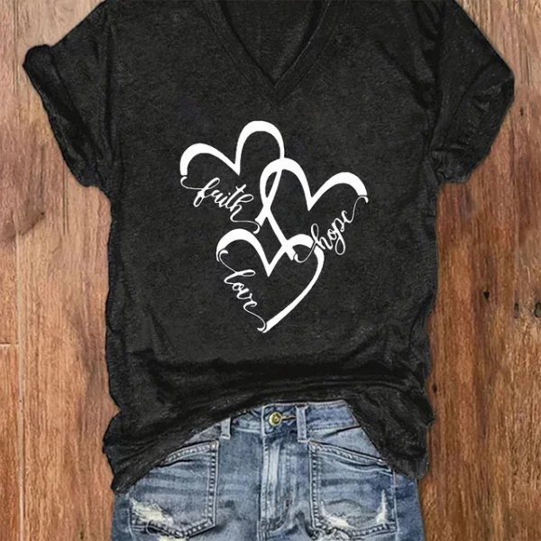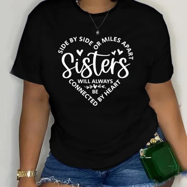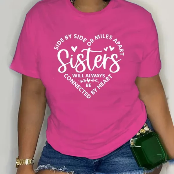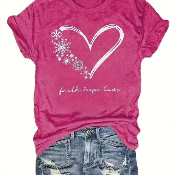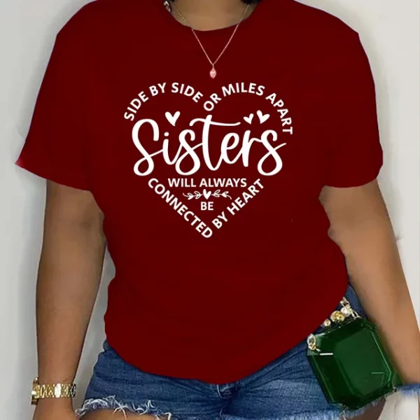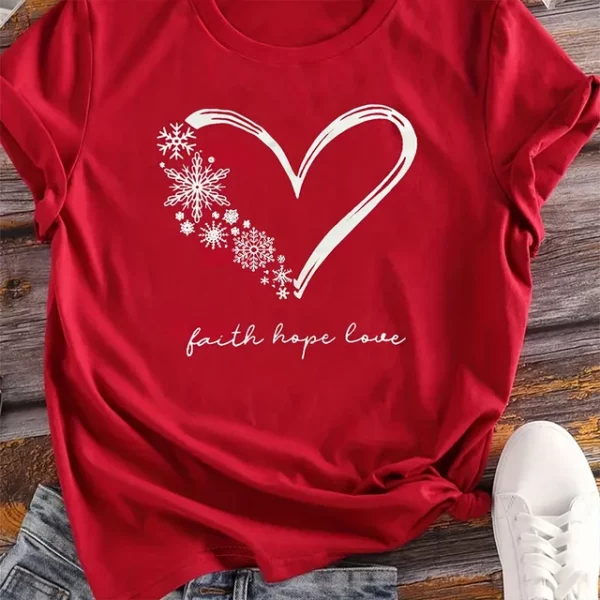 Women’s T-shirt Round Neck Short Sleeved Heart-shaped Letter Pattern Loose Top Casual Comfortable Clothing Women’s Party T-shirt