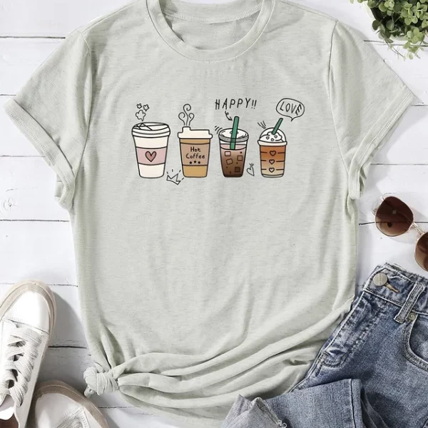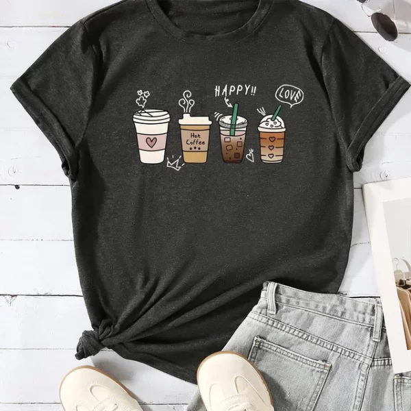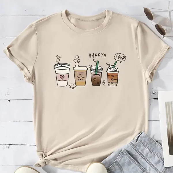 Women’s T-shirt Round Neck Comfortable Top Cartoon Character Letter Printed Clothing Fashionable Loose Women’s Party T-shirt