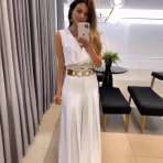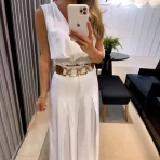 Be the first to review “2024 Spring Summer New Women’s Clothing White Girdle Sleeveless V-neck Vest Wide-Leg Bell-Bottoms Suit-No Need Belt”