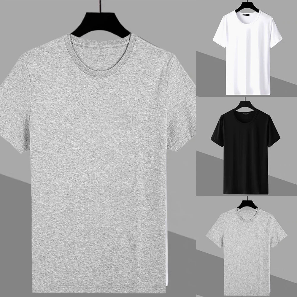 Male Mens T-shirts Leisure Comfort Plain Round Neck Shirts Short Sleeve Slim Fit Solid Stretch T Shirt Fashion