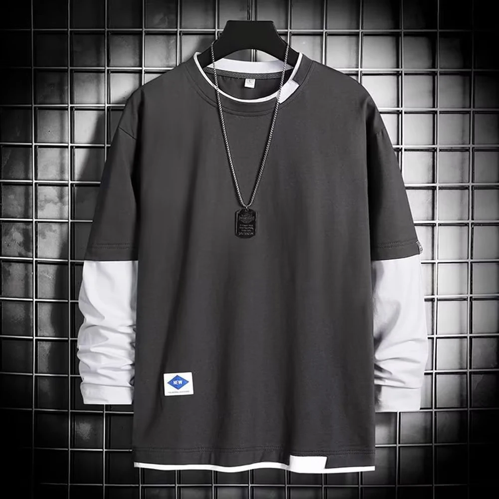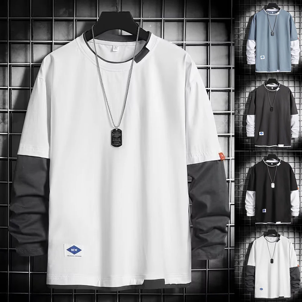 * Item Features:Men,Casual,Fashion,Color Matching Long Sleeve T-shirt,Top,Streetwear,Crew Neck Baggy Clothes,Undershirt