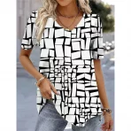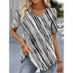 New Women’s T-Shirt Summer V-Neck Tee Loose Casual Top Stripes Funny Printed Female Clothing Streetwear Women Pullover T Shirts