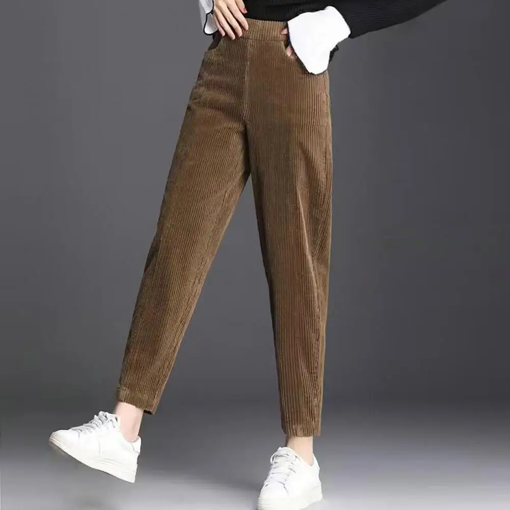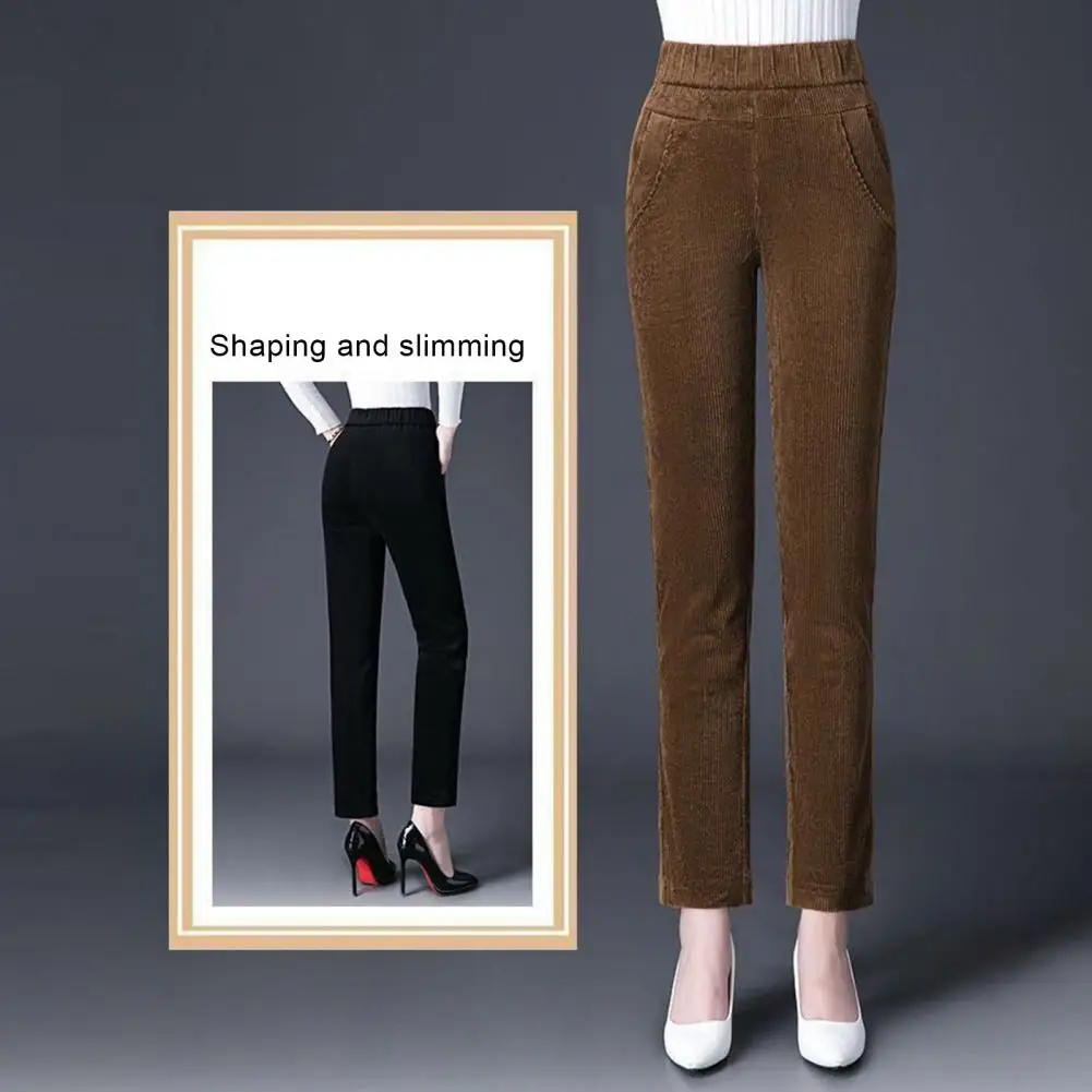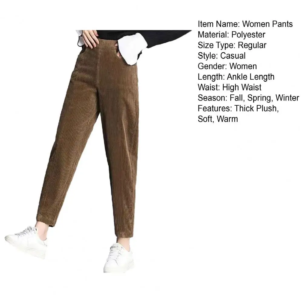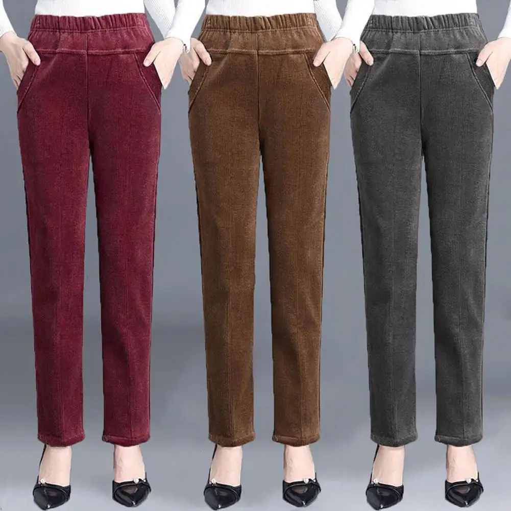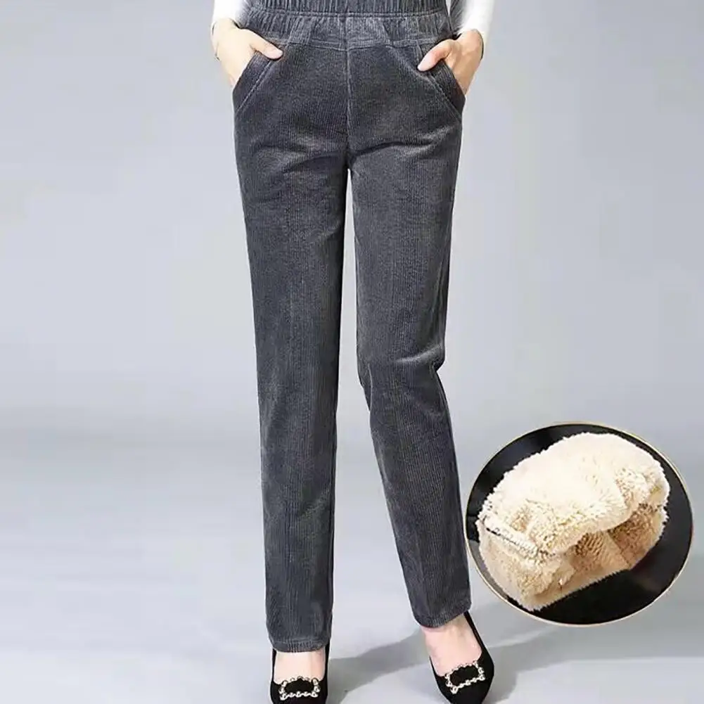 Fall Winter Women Pants High Elastic Waist Thick Plush Loose Wide Leg Straight Soft Solid Color Pockets Casual Ankle Length Mother Long Trousers