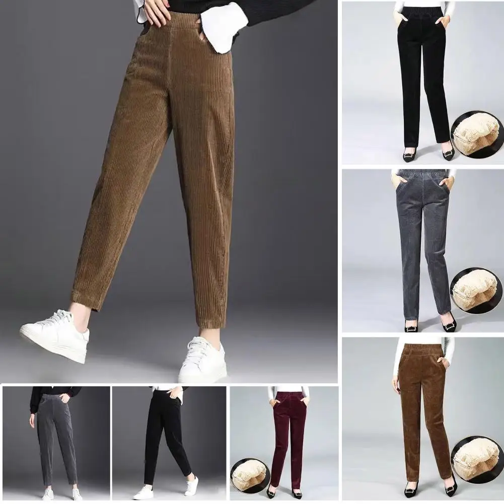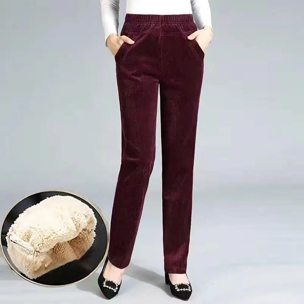 Featuring convenient pockets, these casual pants are not only fashionable but also practical. The straight leg cut and corduroy material give them a trendy and timeless appeal. Plus, the faux lamb wool fleece lining provides extra warmth during colder seasons.