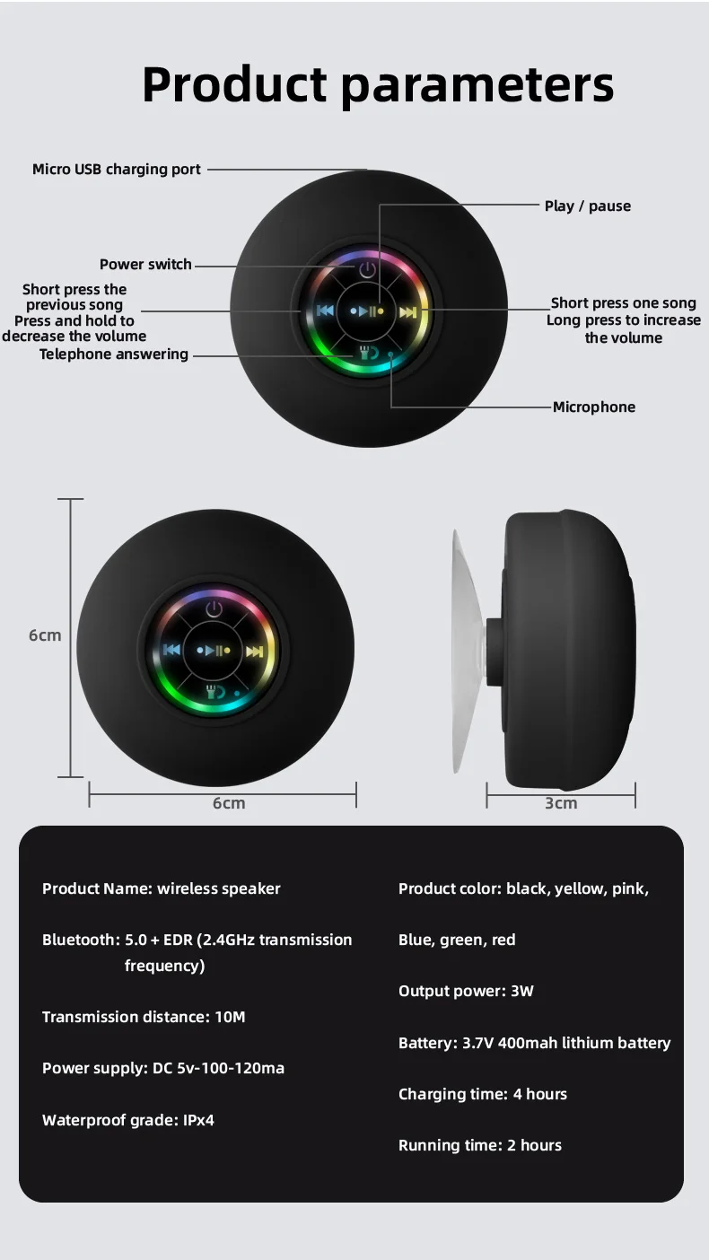 - feature3: Music Subwoofer Player with Suction Cup and LED Lights