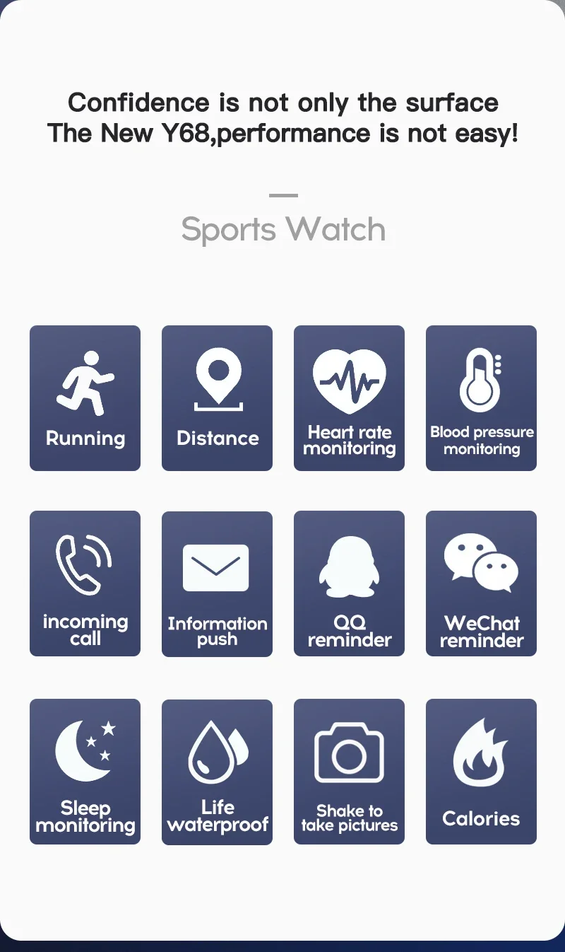 1.Smart Life Assistant: The watch can monitor the steps, calories, heart rate, distance, sleep quality, etc. Of the day. At the same time, it can connected to a smart phone to view information, remotely take pictures, retrieve mobile phones,Sedentary reminder, Alarm Clock, Support Bluetooth 4.0, Android, IOS, and other thoughtful and convenient functions to Keep abreast of your exercise intensity and physical condition in order to adjust your fitness plan in a timely manner.