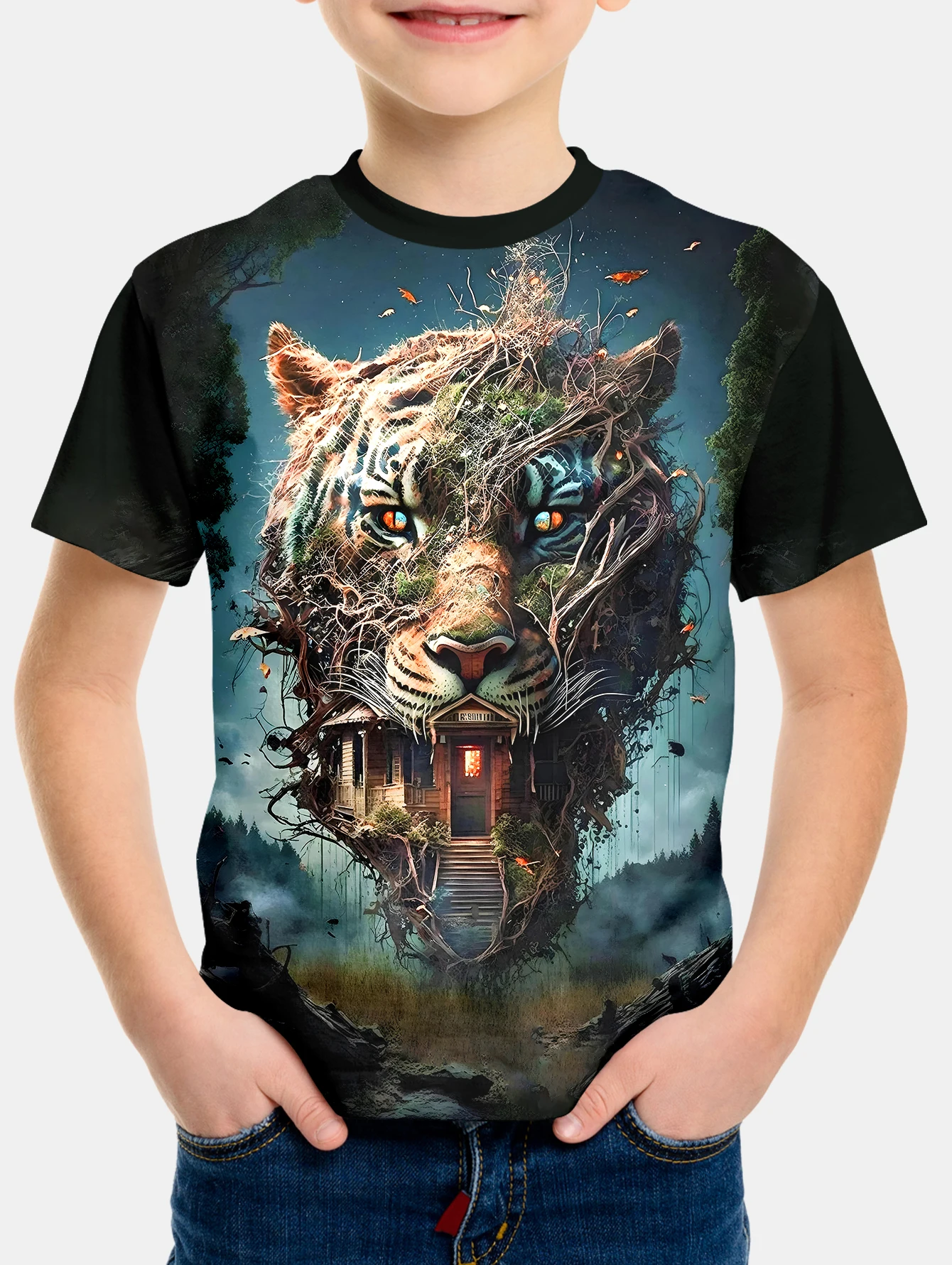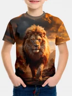 Summer Cool Lion Animal Pattern Children’s Tee Tops, Boy’s Round Neck Casual Short Sleeve Comfortable Breathable Sports T-shirt