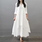 Ladies Two Artistic Large Swing Linen Loose Long Sleeved Cotton Linen Skirt