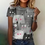 Be the first to review “Women’s Fashion T-shirt Summer Crew-neck Clothing Elegant Casual Short Sleeve Cat Print Top Fashion Loose T-shirt Women Clothing”