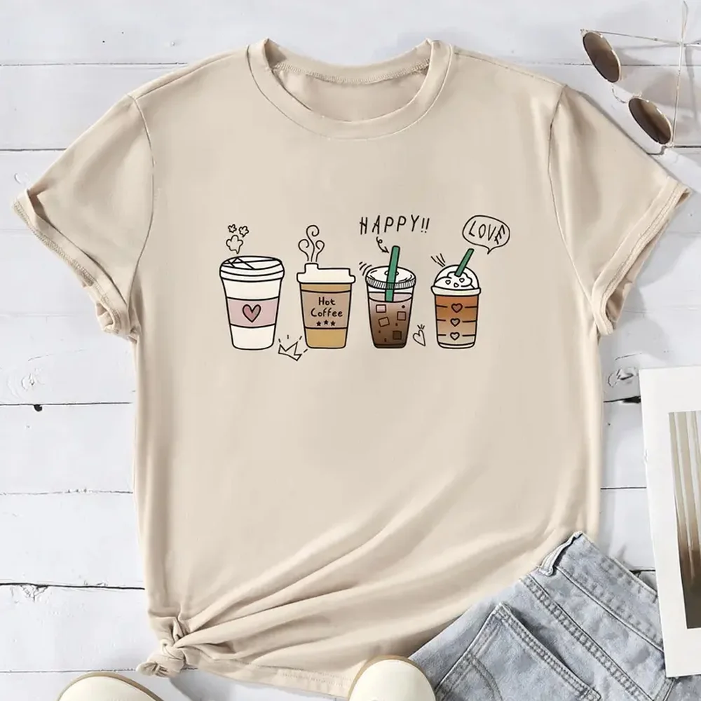 Women’s T-shirt Loose Round Neck Top Party Clothing Trend Print Pattern Comfortable Short Sleeved Women’s Fashion T-shirt Top